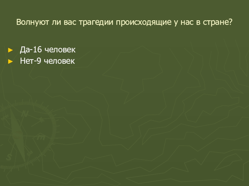 Слайд 18Волнуют ли вас трагедии происходящие у нас в стране?