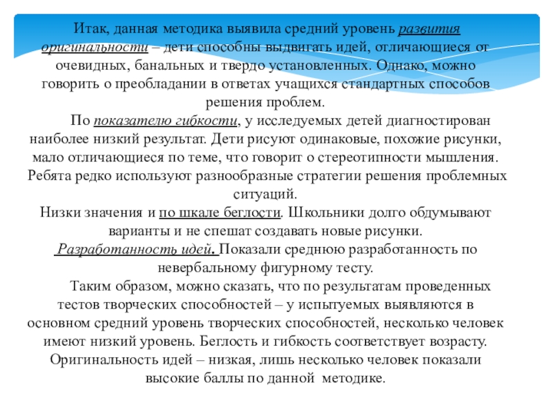 Результаты проведённого психодиагностического исследования творческих способностей обучающихся младшего школьного возраста.