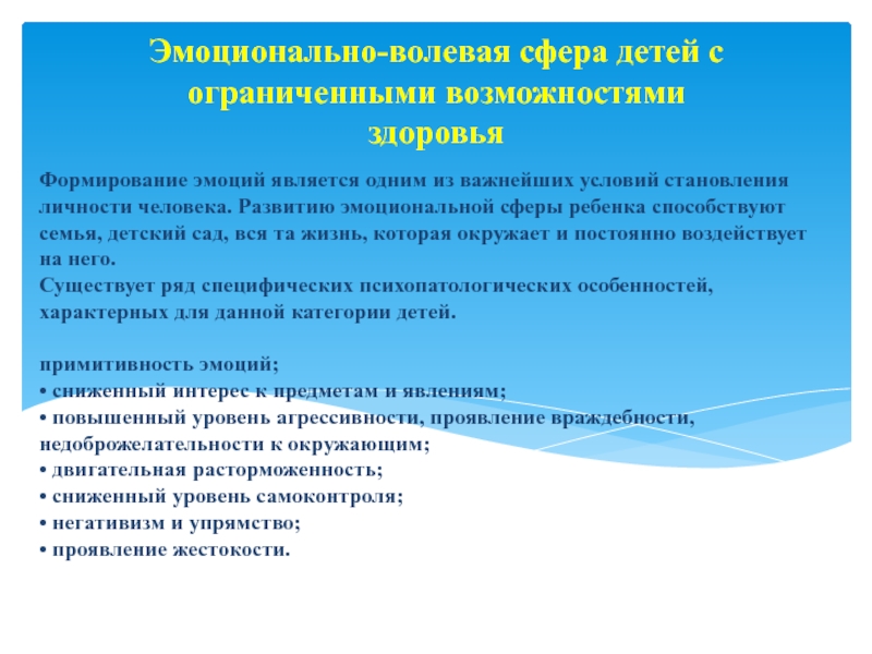 Эмоционально-волевая сфера детей с ограниченными возможностями здоровья
