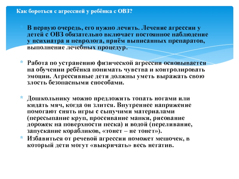 Как бороться с агрессией у ребёнка с ОВЗ?
