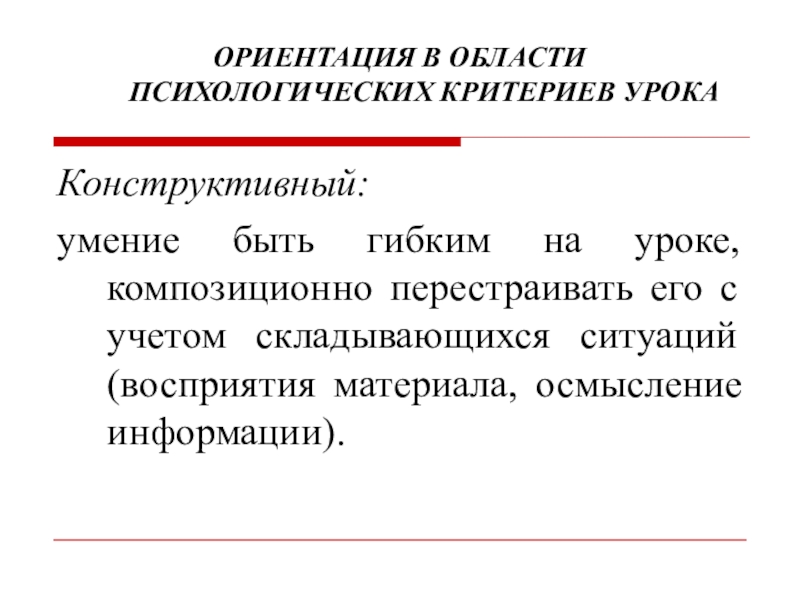 Слайд 26ОРИЕНТАЦИЯ В ОБЛАСТИ ПСИХОЛОГИЧЕСКИХ КРИТЕРИЕВ УРОКА