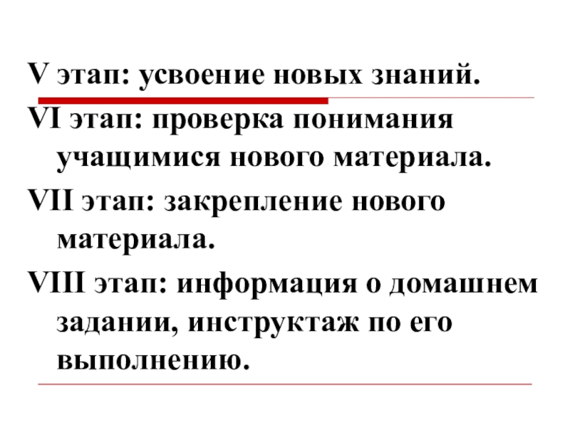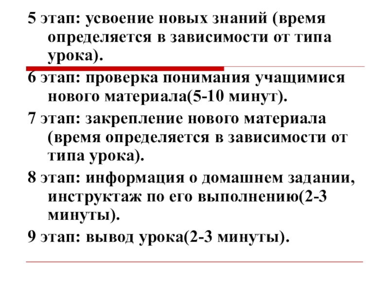 Слайд 215 этап: усвоение новых знаний (время определяется в зависимости от типа