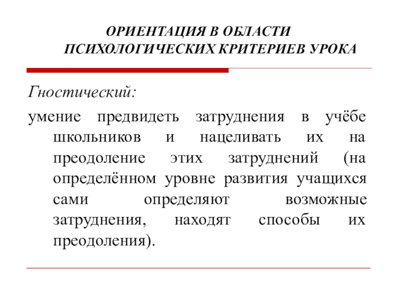 Слайд 24ОРИЕНТАЦИЯ В ОБЛАСТИ ПСИХОЛОГИЧЕСКИХ КРИТЕРИЕВ УРОКА