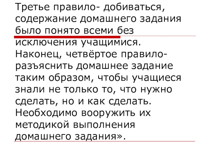 Слайд 9Третье правило- добиваться, содержание домашнего задания было понято всеми без исключения