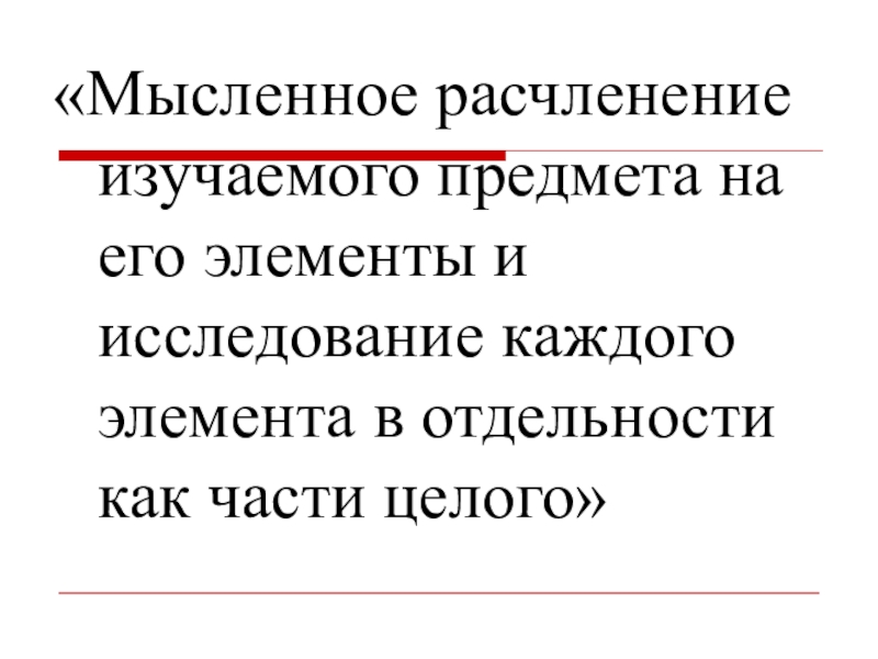 Слайд 2«Мысленное расчленение изучаемого предмета на его элементы и исследование каждого элемента
