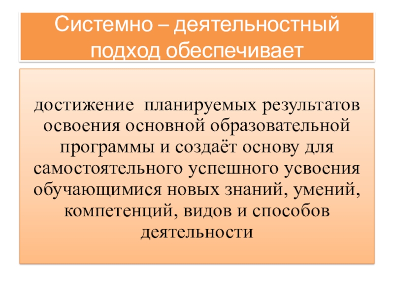 Слайд 6Системно – деятельностный подход обеспечивает