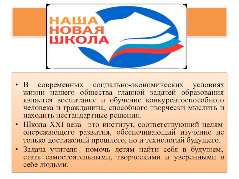 Школа XXI века –это институт, соответствующий целям опережающего развития, обеспечивающий изучение не только достижений прошлого, но и технологий будущего.