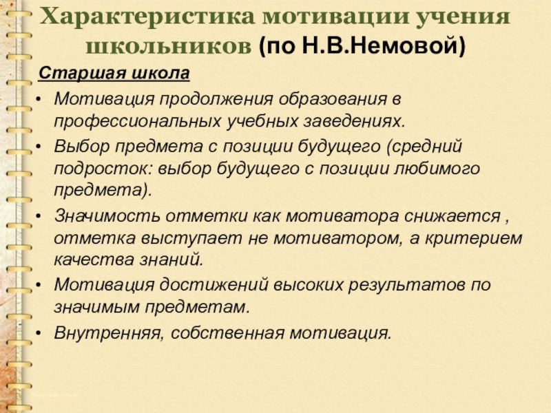 Внешняя мотивация (лежит за пределами учебного процесса)