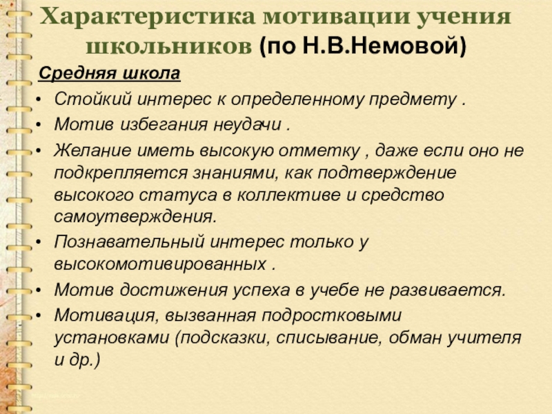 Внутренняя мотивация (порождается самой учебной деятельностью)
