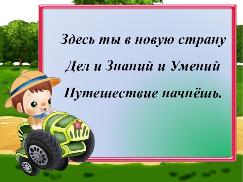 Здесь ты в новую странуДел и Знаний и УменийПутешествие начнёшь.