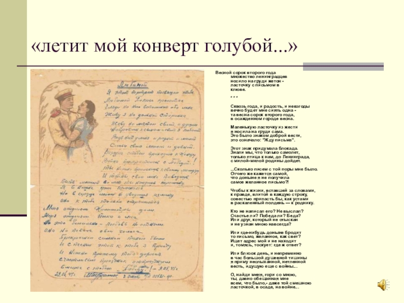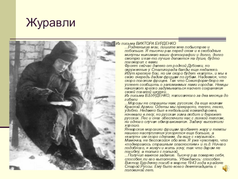 Из письма В.БУРДЕНКО, написанного за два месяца до гибели