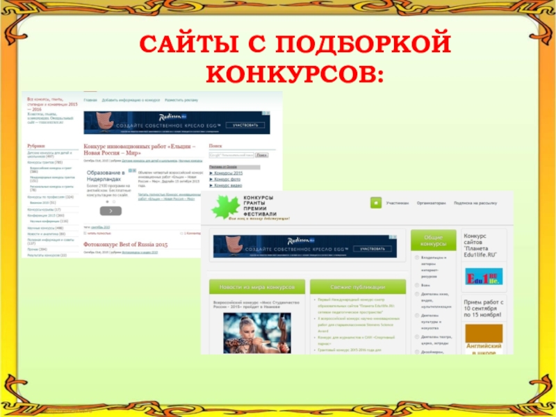 Слайд 10САЙТЫ С ПОДБОРКОЙ КОНКУРСОВ: