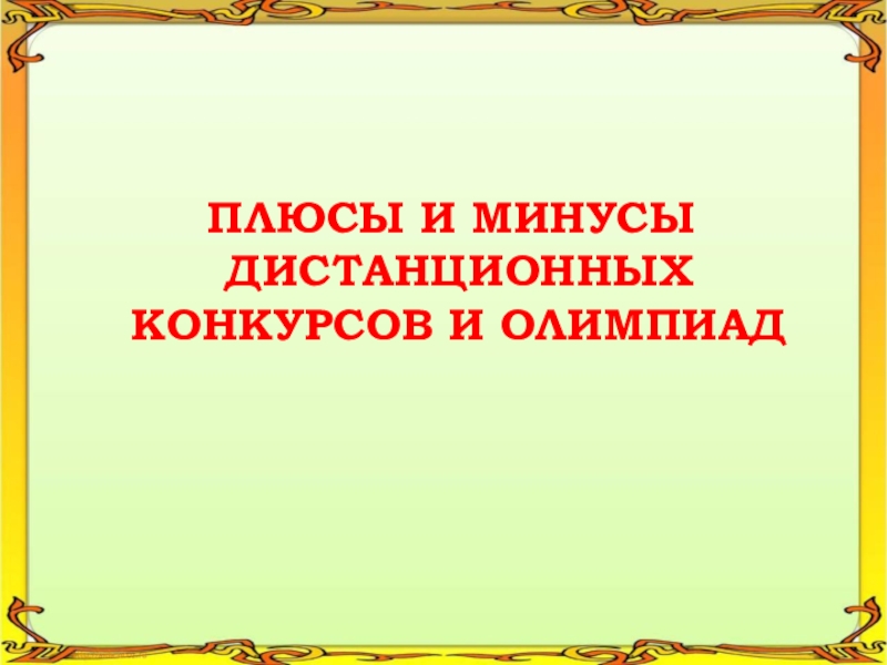 Слайд 1ПЛЮСЫ И МИНУСЫ ДИСТАНЦИОННЫХ КОНКУРСОВ И ОЛИМПИАД