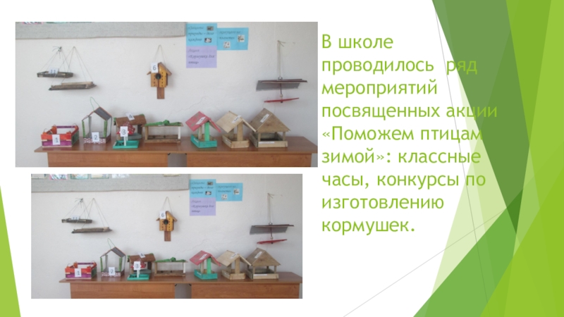 Слайд 5В школе проводилось ряд мероприятий посвященных акции «Поможем птицам зимой»: классные