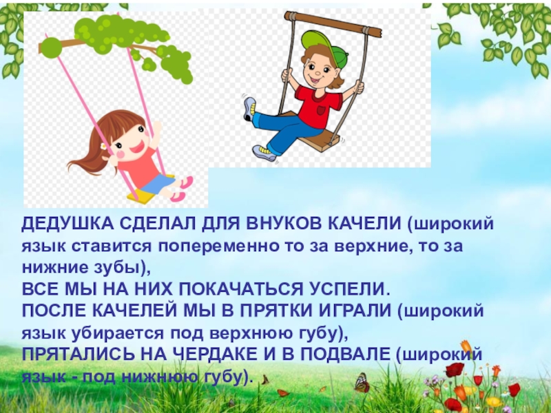 Потом увидел, как девочка на качелях качается: вверх-вниз. Сначала медленно, потом быстрее и быстрее. И он так же покачался.
