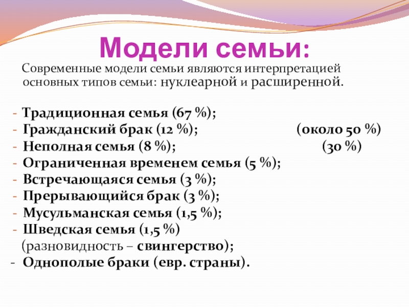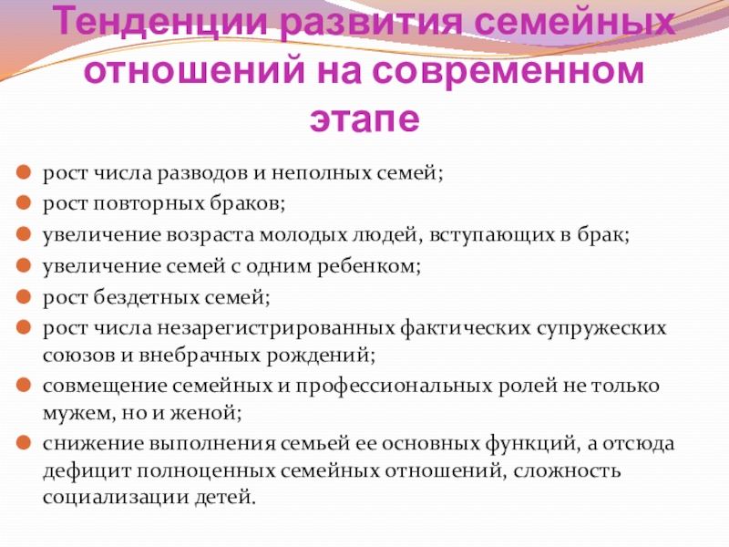 Слайд 13Тенденции развития семейных отношений на современном этапе