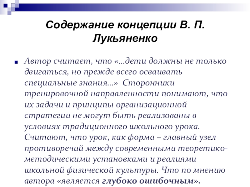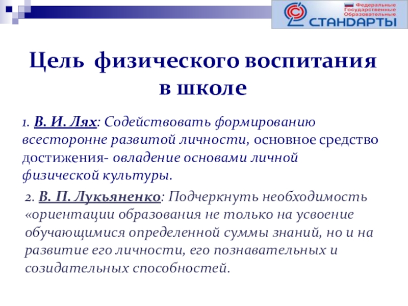 2. В. П. Лукьяненко: Подчеркнуть необходимость «ориентации образования не только на усвоение обучающимися определенной суммы знаний, но и на развитие его личности, его познавательных и созидательных способностей.