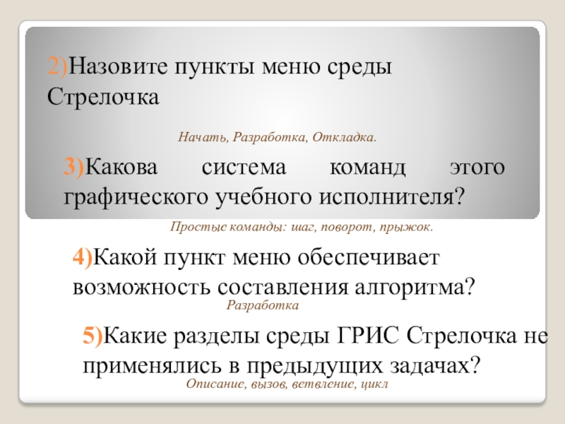 5)Какие разделы среды ГРИС Стрелочка не применялись в предыдущих задачах?