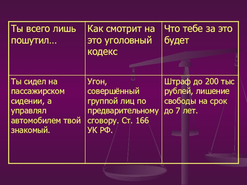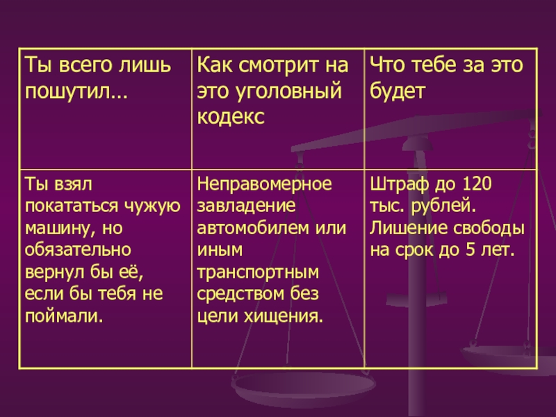 неправомерное завладение автомобилем или иным транспортным средством без цели хищения (статья 166),