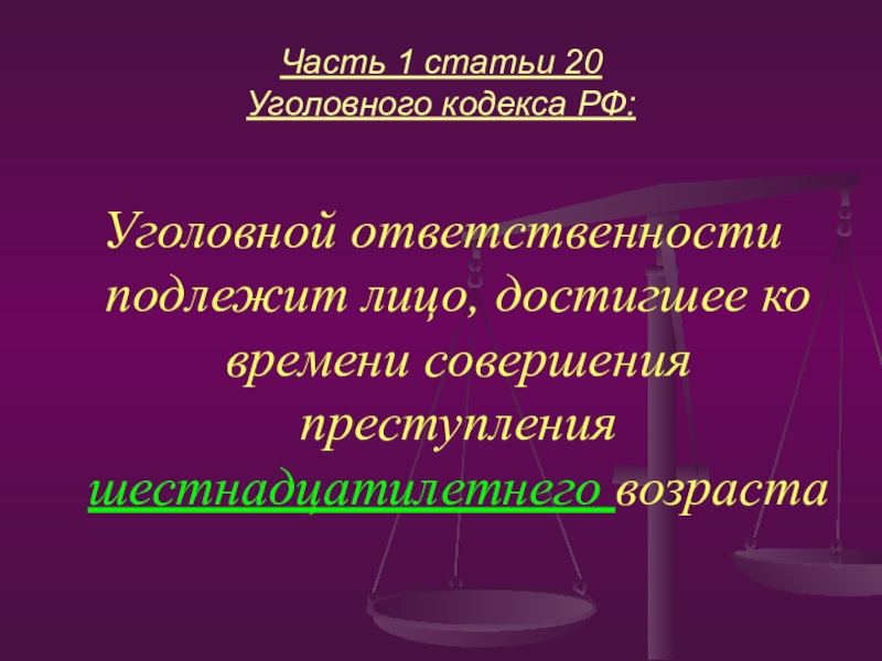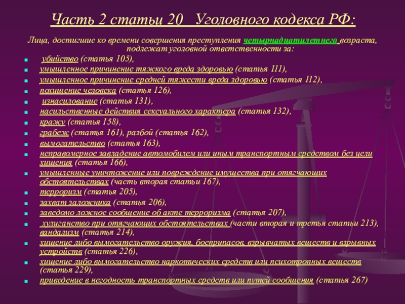 Слайд 15Часть 2 статьи 20 Уголовного кодекса РФ:
