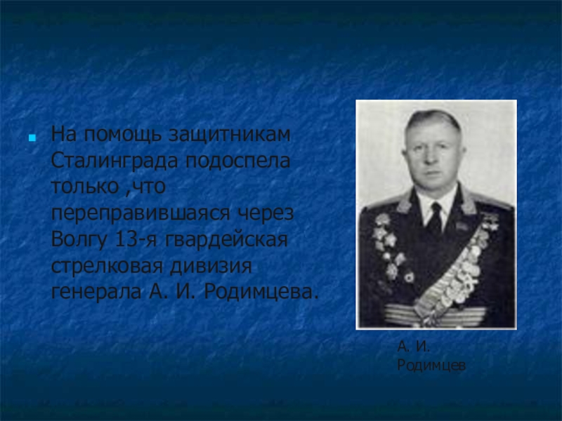 гвардейская стрелковая дивизия генерала А. И. Родимцева.