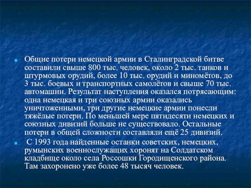 Общие потери немецкой армии в Сталинградской битве составили свыше 800 тыс.
