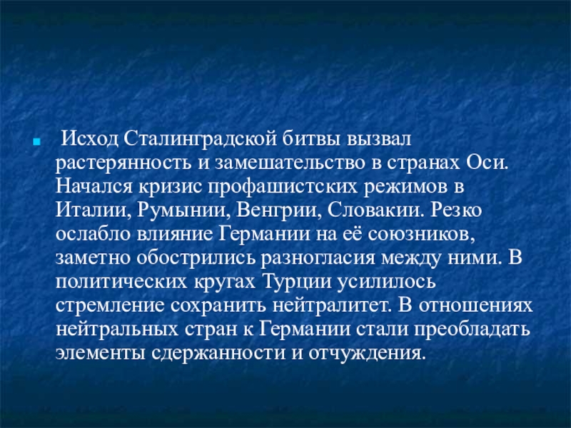 Исход Сталинградской битвы вызвал растерянность и замешательство в странах Оси.