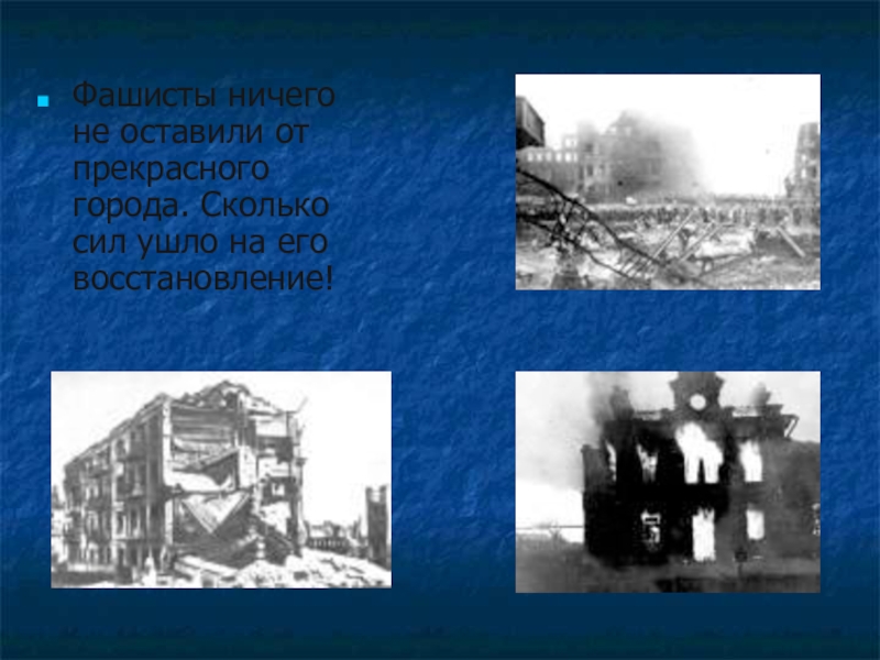 Слайд 16Фашисты ничего не оставили от прекрасного города. Сколько сил ушло на