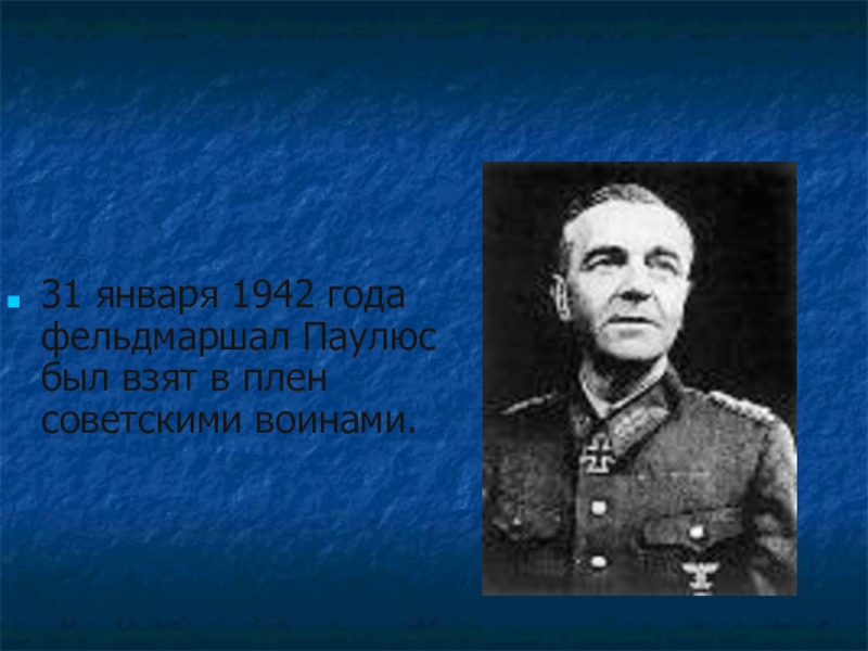 Слайд 1331 января 1942 года фельдмаршал Паулюс был взят в плен советскими