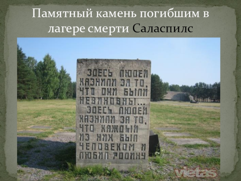 Слайд 45Саласпилс – лагерь смерти в Литве.