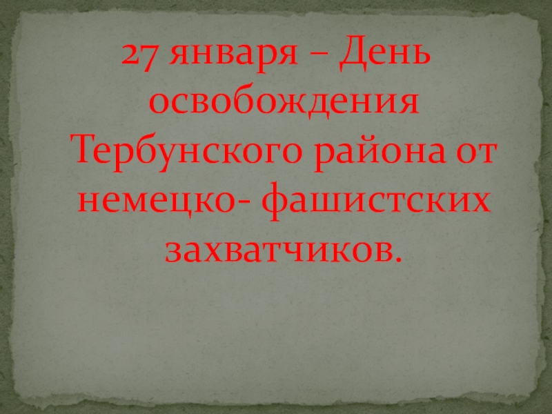 Слайд 2527 января – День освобождения Тербунского района от немецко- фашистских захватчиков.