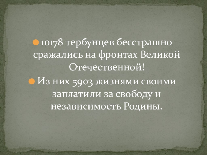 10178 тербунцев бесстрашно сражались на фронтах Великой Отечественной!Из них 5903 жизнями своими заплатили за свободу и независимость