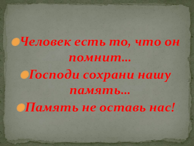 Человек есть то, что он помнит…Господи сохрани нашу память…Память не оставь нас!