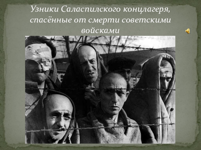 Слайд 39Узники Саласпилского концлагеря, спасённые от смерти советскими войсками