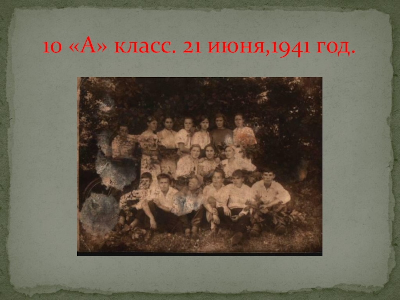 Слайд 410 «А» класс. 21 июня,1941 год.