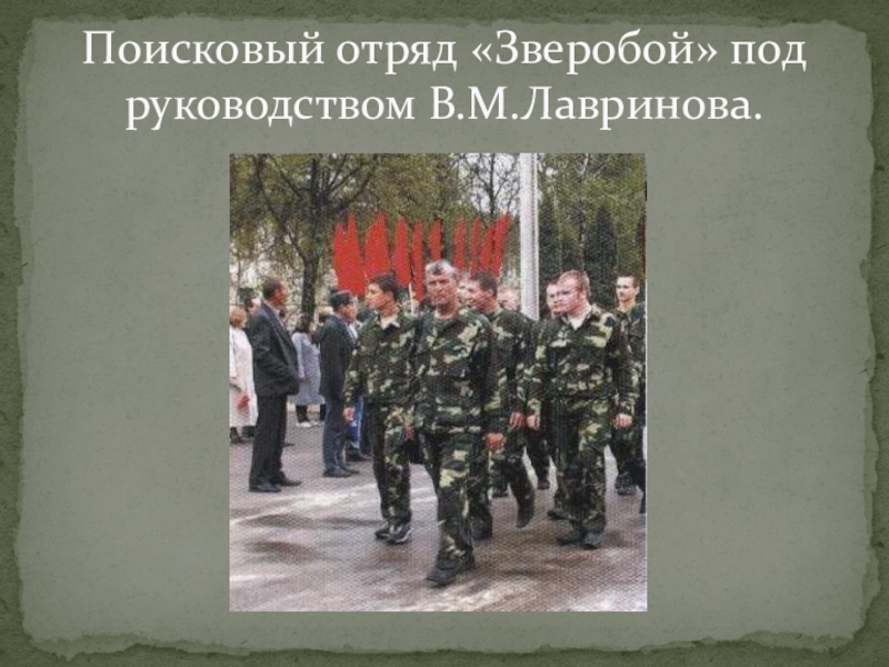Слайд 34Поисковый отряд «Зверобой» под руководством В.М.Лавринова.