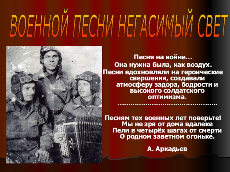 ВОЕННОЙ ПЕСНИ НЕГАСИМЫЙ СВЕТ