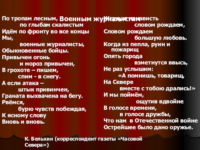К. Бельхин (корреспондент газеты «Часовой Севера»)
