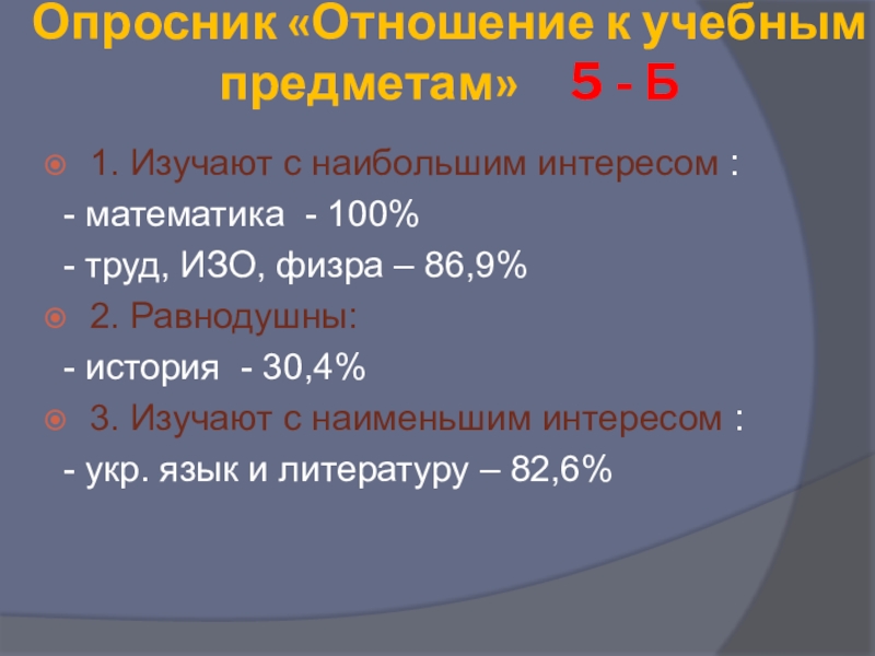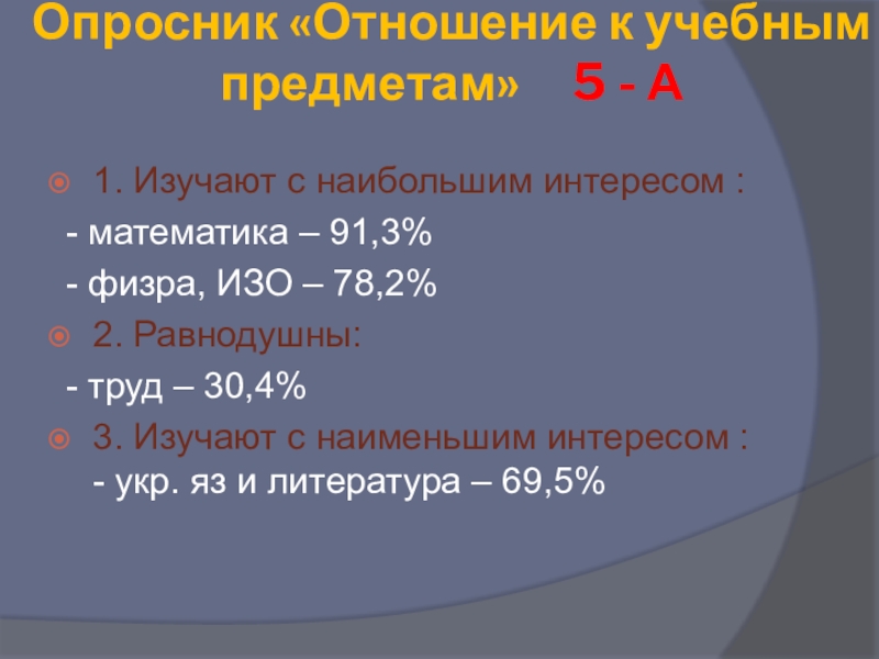 3. Изучают с наименьшим интересом : - укр. яз и литература – 69,5%