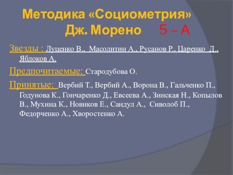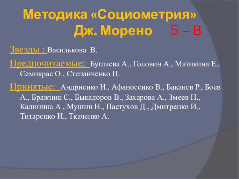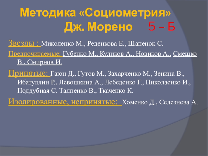 Изолированные, непринятые: Хоменко Д., Селезнева А.