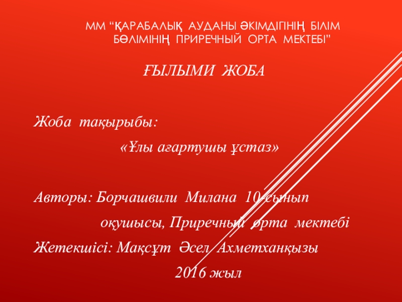 Жетекшісі: Мақсұт Әсел Ахметханқызы