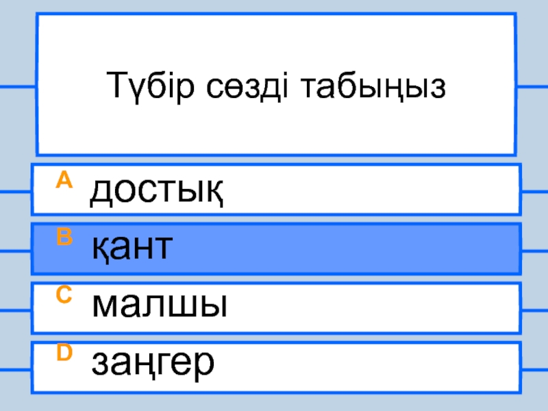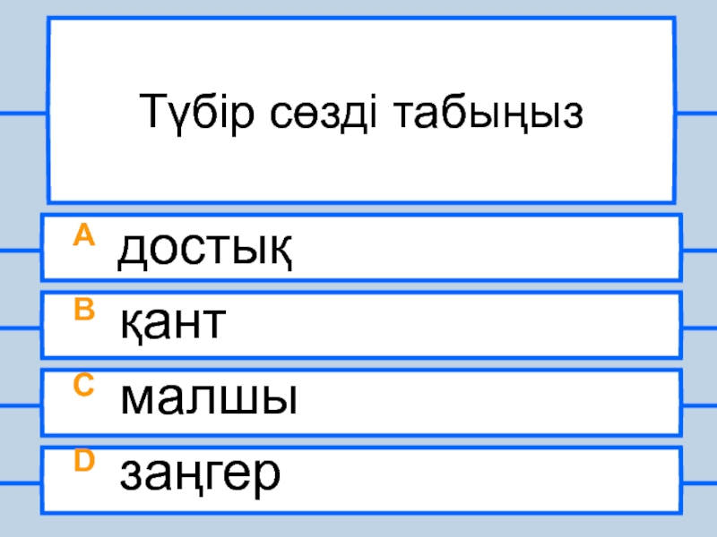 Түбір сөзді табыңызA достықB қантC малшыD заңгер