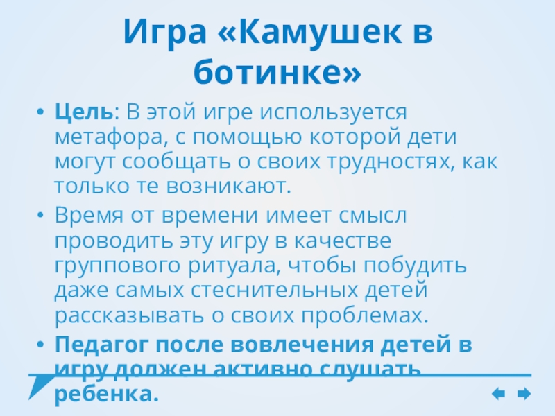 Педагог после вовлечения детей в игру должен активно слушать ребенка.