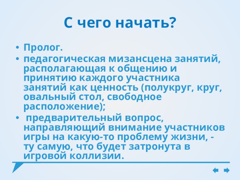 педагогическая мизансцена занятий, располагающая к общению и принятию каждого