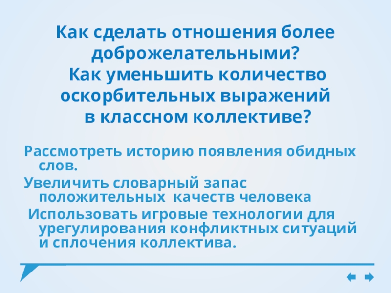 Использовать игровые технологии для урегулирования конфликтных ситуаций и сплочения коллектива.
