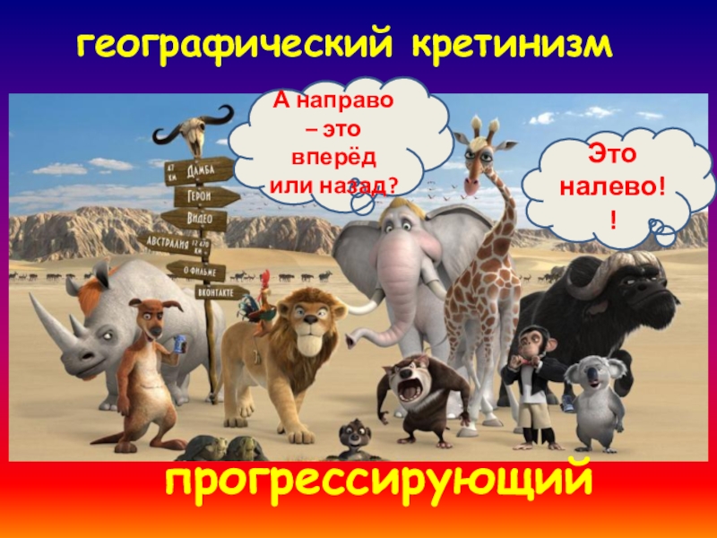 географический кретинизмпрогрессирующийА направо – это вперёд или назад?Это налево!!