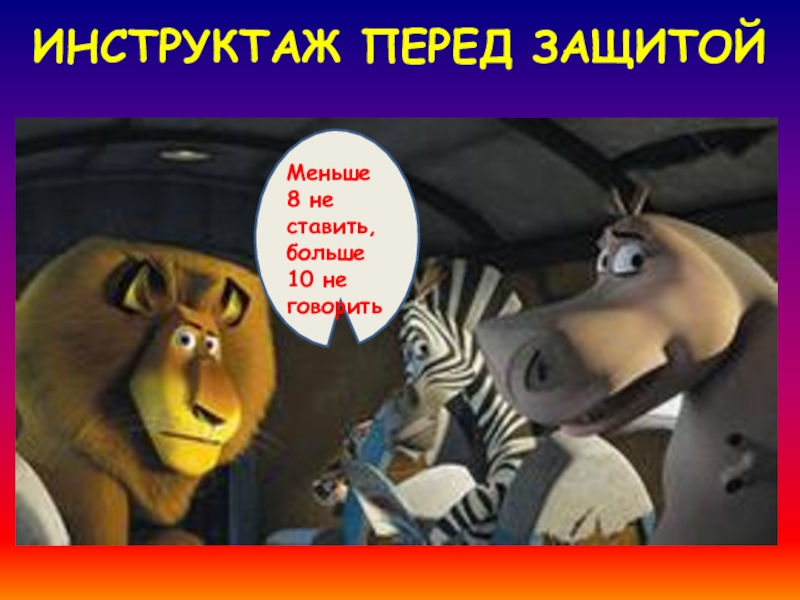 Меньше 8 не ставить, больше 10 не говоритьИНСТРУКТАЖ ПЕРЕД ЗАЩИТОЙ