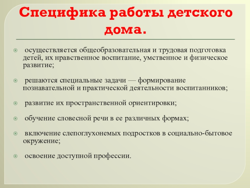 Возраст воспитанников от З до 18 лет, учреждение рассчитано на 100 детей.