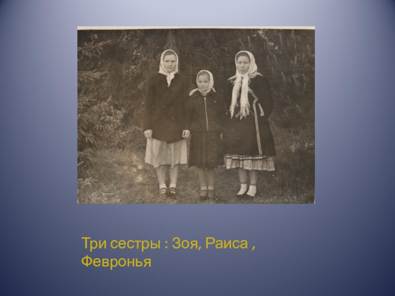 Три сестры : Зоя, Раиса ,Февронья