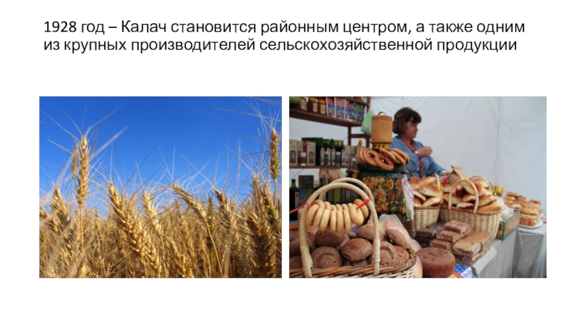 Слайд 121928 год – Калач становится районным центром, а также одним из